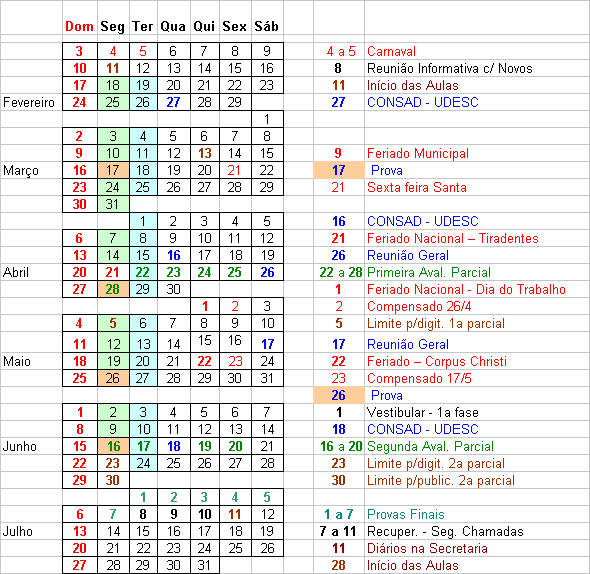 Prova ==> 28/abr Recuperação ==> 12 de maio