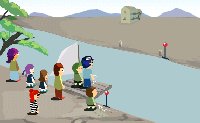 Clique nos bonequinhos para colocá-los dentro do barco e depois na alavanca