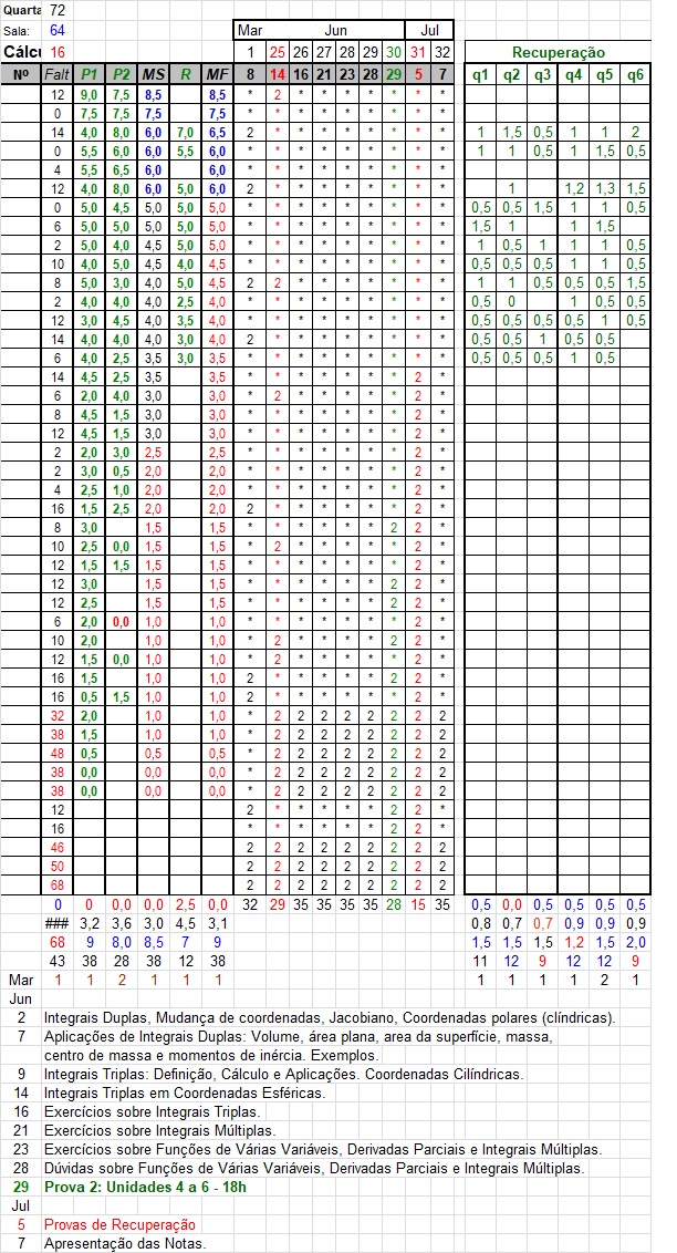 Integral dupla: definição; propriedades, cálculo da integral dupla, mudança de variáveis (coordenadas polares), aplicações da integral dupla. Integral Tripla: definição, propriedades. - Exercícios