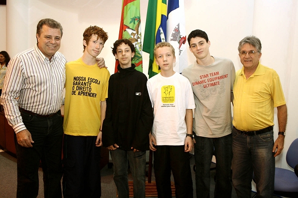 O auditório da Câmara de Vereadores de Joinville ficou lotado de estudantes, na manhã desta quinta-feira (11), para a cerimônia de entrega de premiações da 2ª Olimpíada de Matemática. A iniciativa, realizada no ano passado, reuniu alunos de escolas públicas de todo o país. Para a rede municipal de Joinville foram 171 condecorações entre medalhas, certificados, menções honrosas e bolsas de estudo.