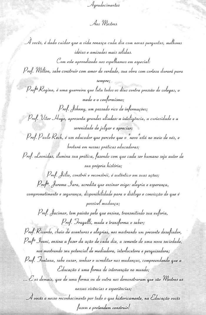 A vocês, é dado cuidar que a vida renasça cada dia com novas perguntas, melhores idéias e amizades mais sólidas.